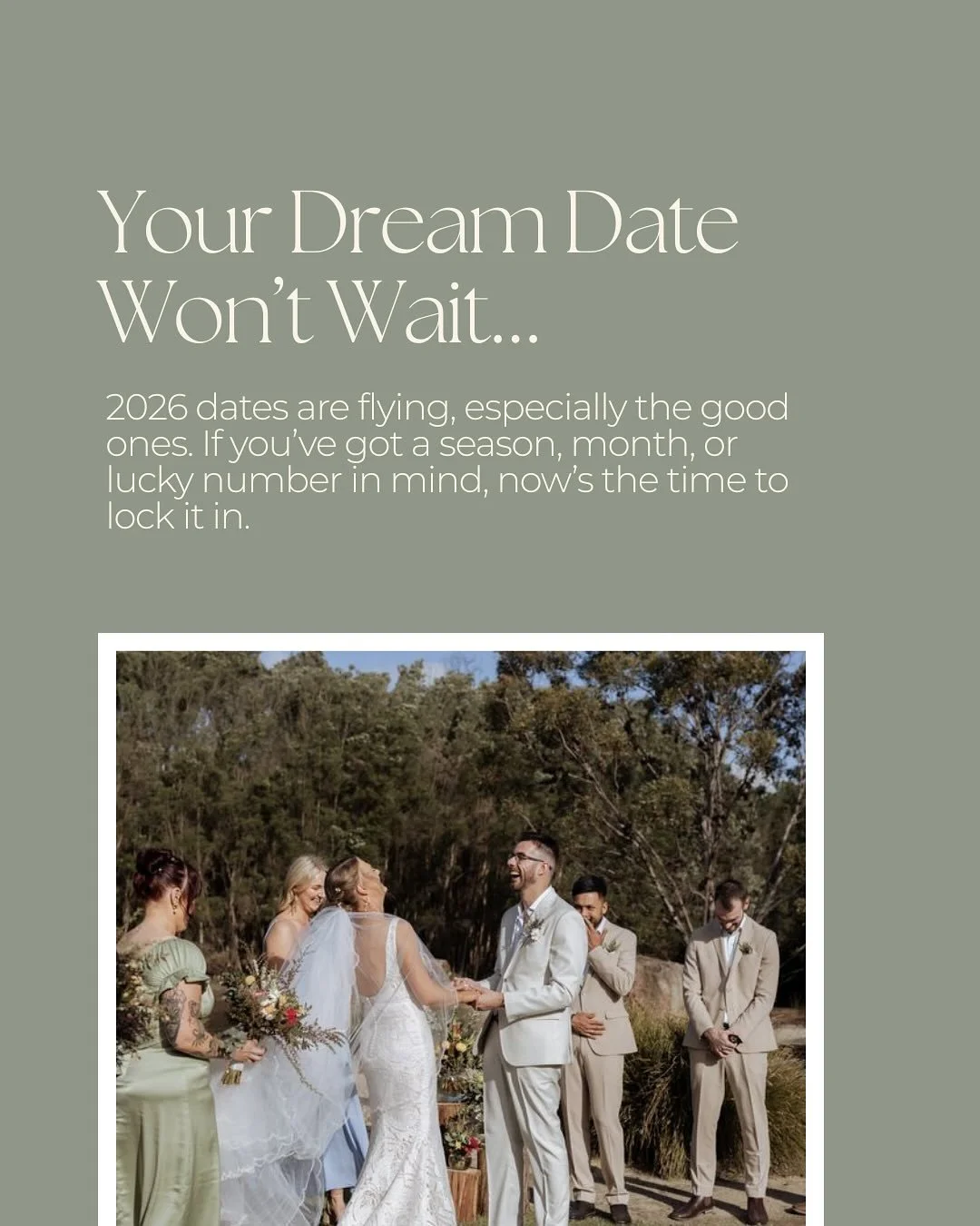 You’re in a world of your own here - no travel, no timelines, no stress. Ceremony, photos, food and reception all flow together in one place, so you can focus on what really matters: marrying the love of your life surrounded by family, friends and the best kind of chaos.